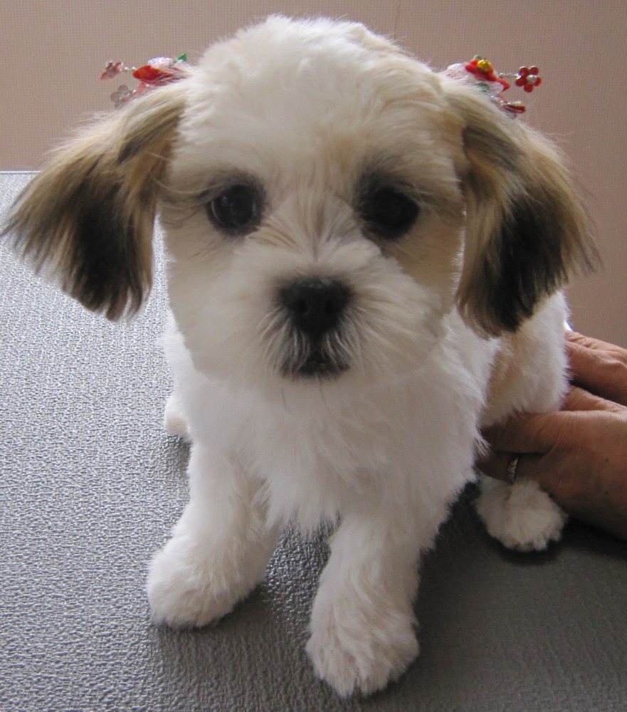 いやぁ~、寒いです。 それにしても、急にこの気温はキツイ・・・。 本日のお客さま紹介は、ミックスのももちゃん。 まだ3ヶ月の赤ちゃんわんこです。 全体的にはシーズー、優しいお顔はマルチーズ、 いいとこ取りで、性格もとっても温厚な女の子。 生まれて初めてのトリミングもとってもいい子でした。