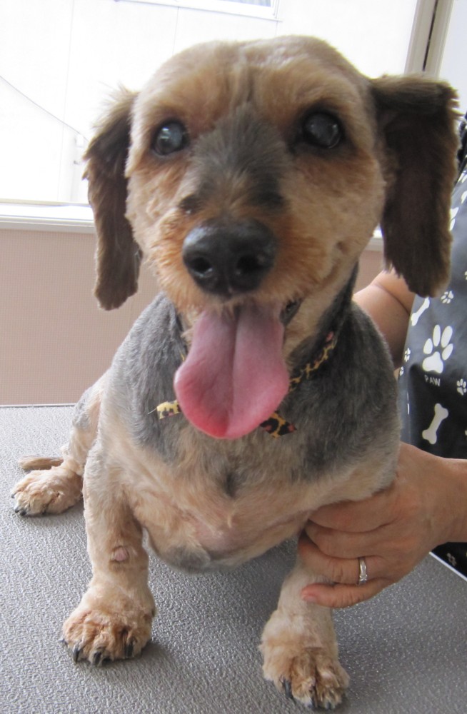 ヨーキーとダックスのハーフ。