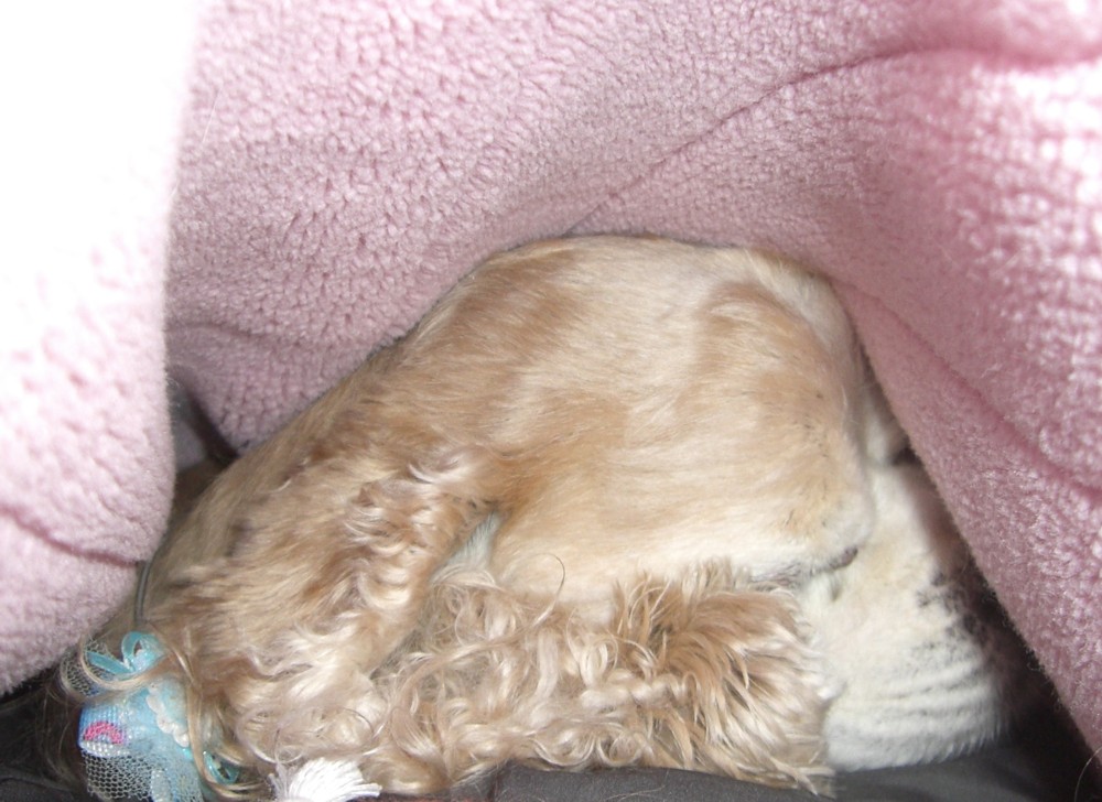 バロンは毛布の中で丸くなっておねんね中。